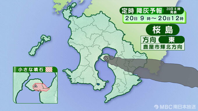 桜島の降灰予報(風向き)2023年1月20日 鹿児島