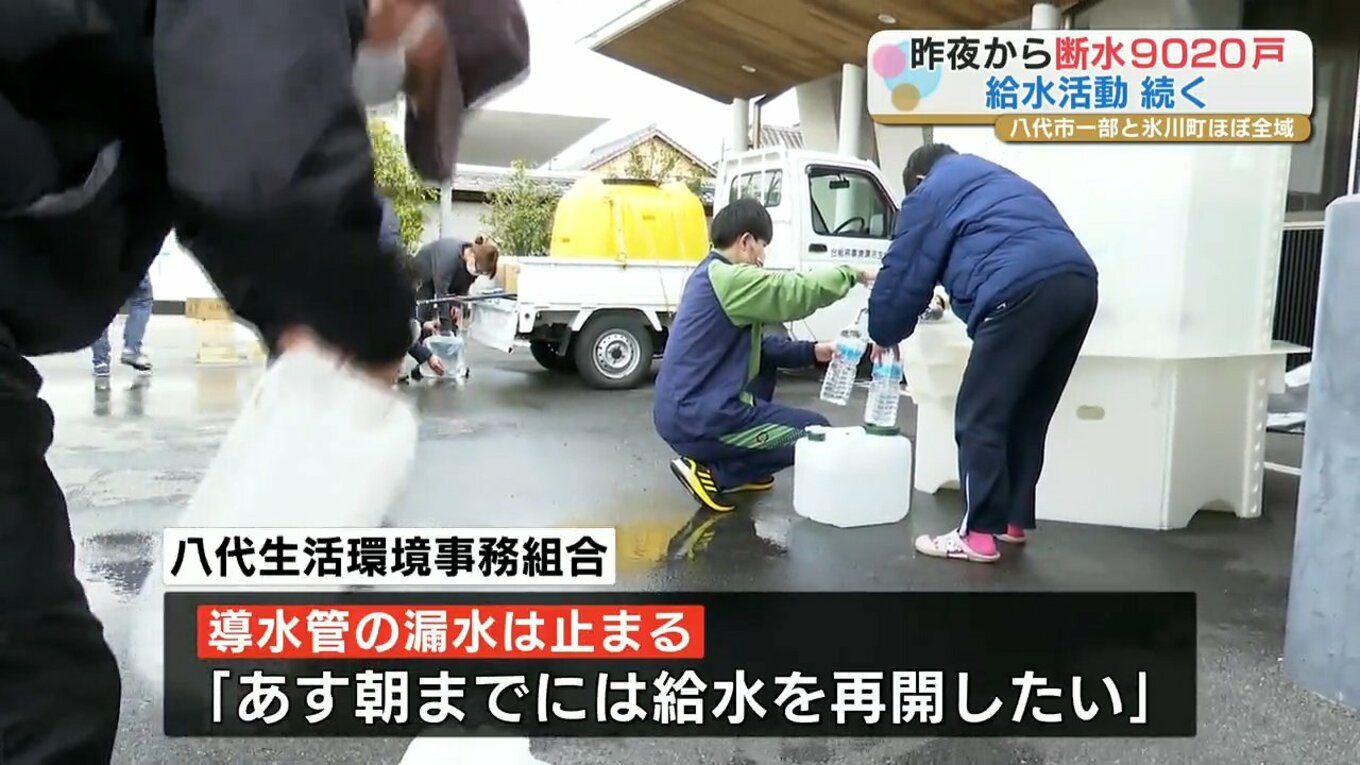 【断水が解除される見通したたず】八代市の一部と氷川町ほぼ全域『約9000戸で断…