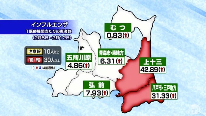 インフルエンザ警報 八戸市・三戸地方と上十三が継続 青森県全体の患者は6週連続…