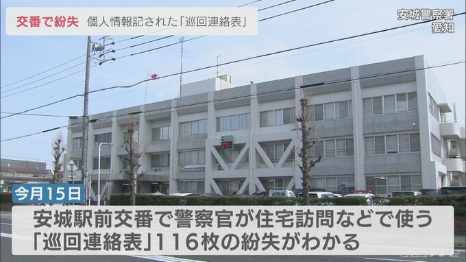 個人情報が記された警察の「巡回連絡表」 交番から116件分紛失 愛知県警安城署