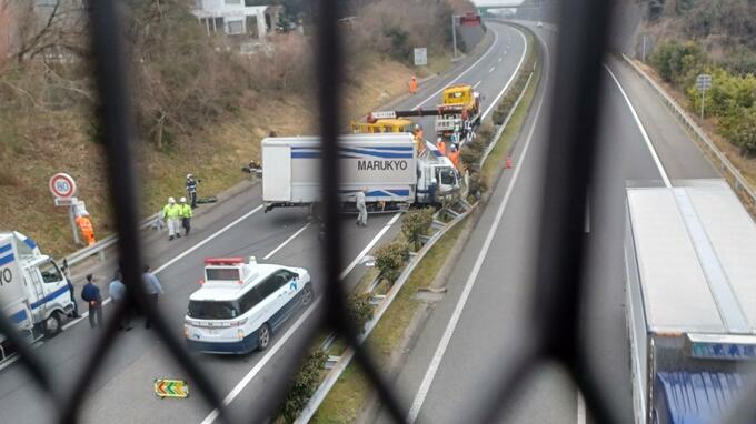 【写真】松山道でトラックなど3台絡む事故 一部区間で3時間通行止め