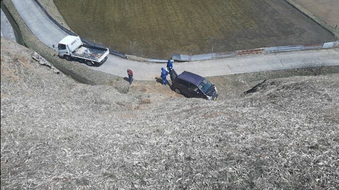高梁市川上町七地で軽乗用車が横転 車両の外に倒れていた高齢の女性が重傷【岡山】