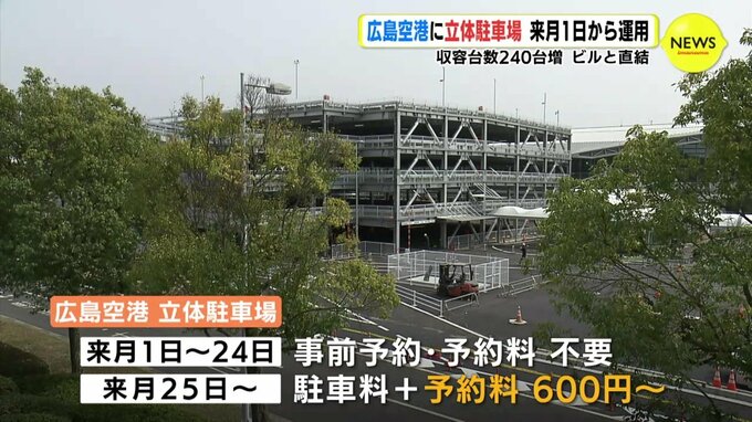 広島空港 初の立体駐車場 5階建て約440台収容 来月から利用開始