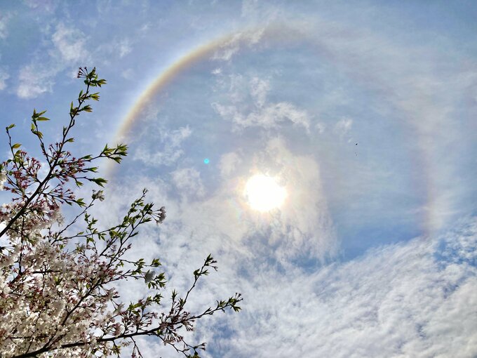 太陽の周りに輝く“虹色の輪”「花見で空を見上げたら」鹿児島県北部で目撃相次ぐ
