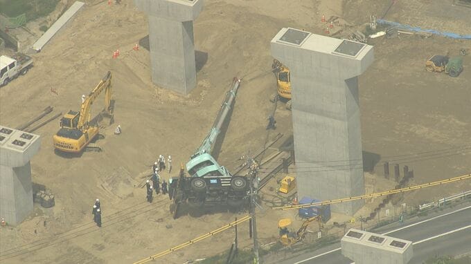 【速報】「クレーン車が転倒した」バイパス道路の工事中 作業員2人けが 広島