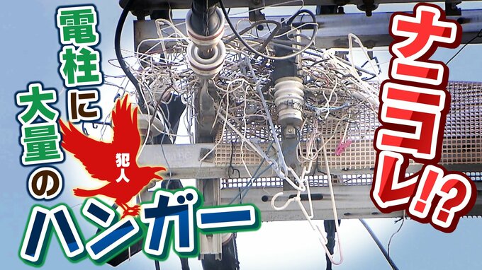 電柱に『異様な光景』無造作に重ねられたハンガーや針金...「フン害」や「漏電の危…