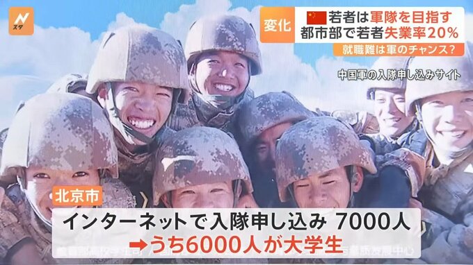 中国で大学生6000人が軍への入隊申し込む 志願増加の背景には20%超の「失業率」