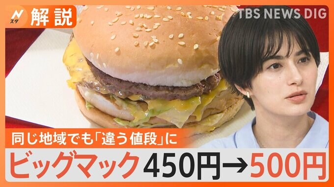 マクドナルド「都心型価格」の拡大で値上げ店舗が増加 ビッグマック450円→500円に 同じ地域でも「違う値段」に困惑の声も【Nスタ解説】