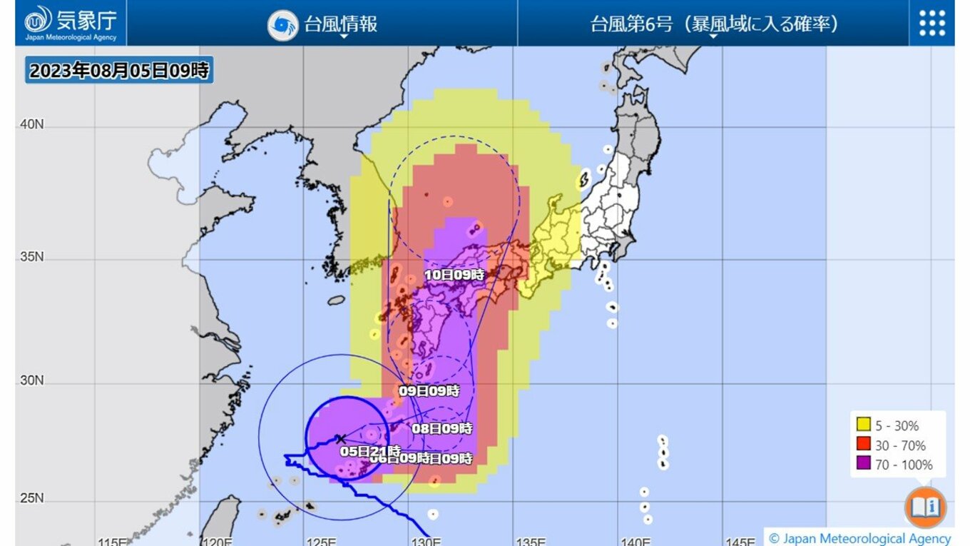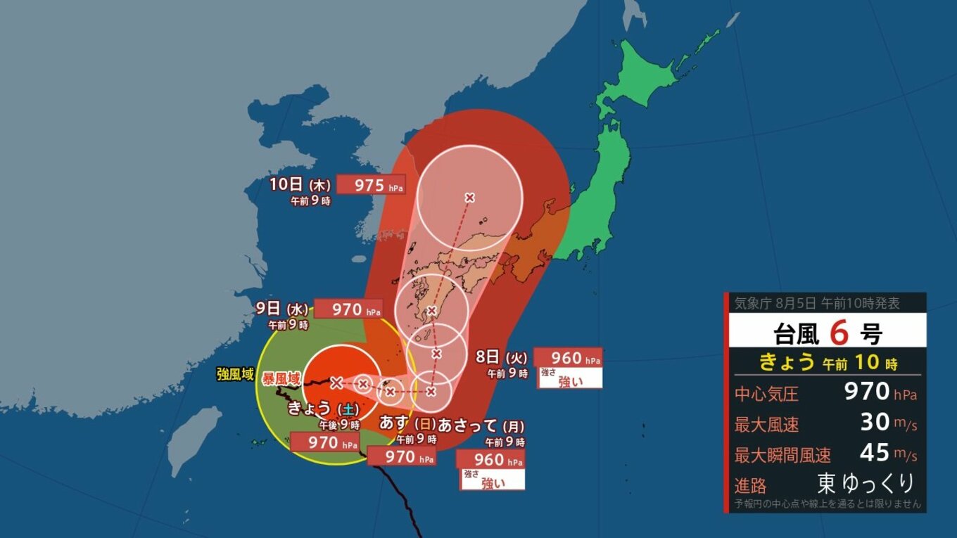 【台風情報】台風6号進路予想 西日本直撃へ 各地の3時間ごとの暴風域に入る確率は…