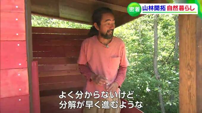 「山の値段は安いレクサス1台分」元東大生、山を買う 自給自足の野生暮らしに密着 岡山県赤磐市の山林で「野生暮らし」をしています 山林の入り口に設けられた「赤い門」 しかも雨柊さんは、「門」の中に住んでいる! しかもこの門は自作!「本を読めば作れる」 この赤い門、何かに似ていると思ったら... 東京大学の赤門 (旧加賀屋敷御守殿門)にそっくり 東京大学の理科一類に2年通っていました インドなどを旅して、沖縄などで暮らして たどり着いたのが、岡山だった。。。でも、なぜ岡山に?? 4700坪の山林を、15年かけ少しずつ開拓してきた 安いレクサス1台分…500万円より少々上だそうです 見よう見まねで電動工具を使い始めた 最初は「グリム童話のお菓子の家に住みたかった」そうです 敷地内にお手製の多くのトイレが... 説明がとっても化学的 「よく分かんないけど」 トイレから見える景色は「景色がBURRN!」 表情も緩んで、出るものが出るそうです 何とキャンプ場も作っちゃいました その理由は... 一般の人も来てほしい!怪しくないんです、と 取材中、気がつけば新たな人が現れた 雨柊さんと「同じにおい」がするこの男性は... 「てっちゃん」です! 何かをひらめいたら「ガーッ」と目を見開くそう 記者も取材中に何度も見た、その見開いた目を!! 食事の定番は、炭火で炊いた玄米 杉澤記者(本業キャスター・自称「美容番長」)も食べてみた 杉澤記者「いい香り そしておいしい!!」 (あれ、また知らない人が増えてる) 風呂(もちろん自作)で観る月が最高 山の中で 静かに夜は更けていく なんとも贅沢なひととき、を毎日味わっています 雨柊さんにとって自分とは?…沈黙のあとひらめいた うらやましさを覚えた野生暮らしでした 記事に戻る
