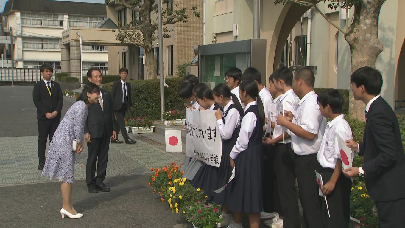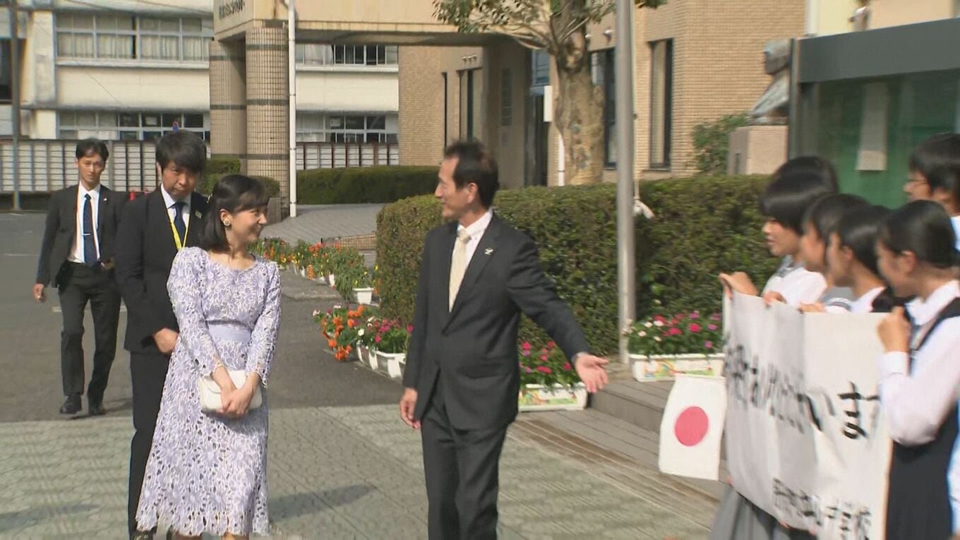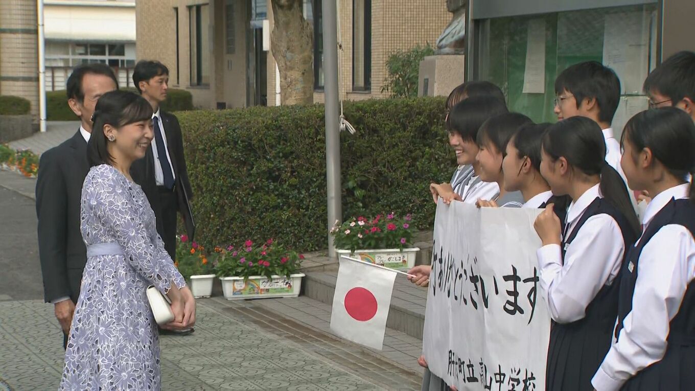 佳子さま レース地のワンピースで中学生に笑顔 初の鹿児島ご訪問