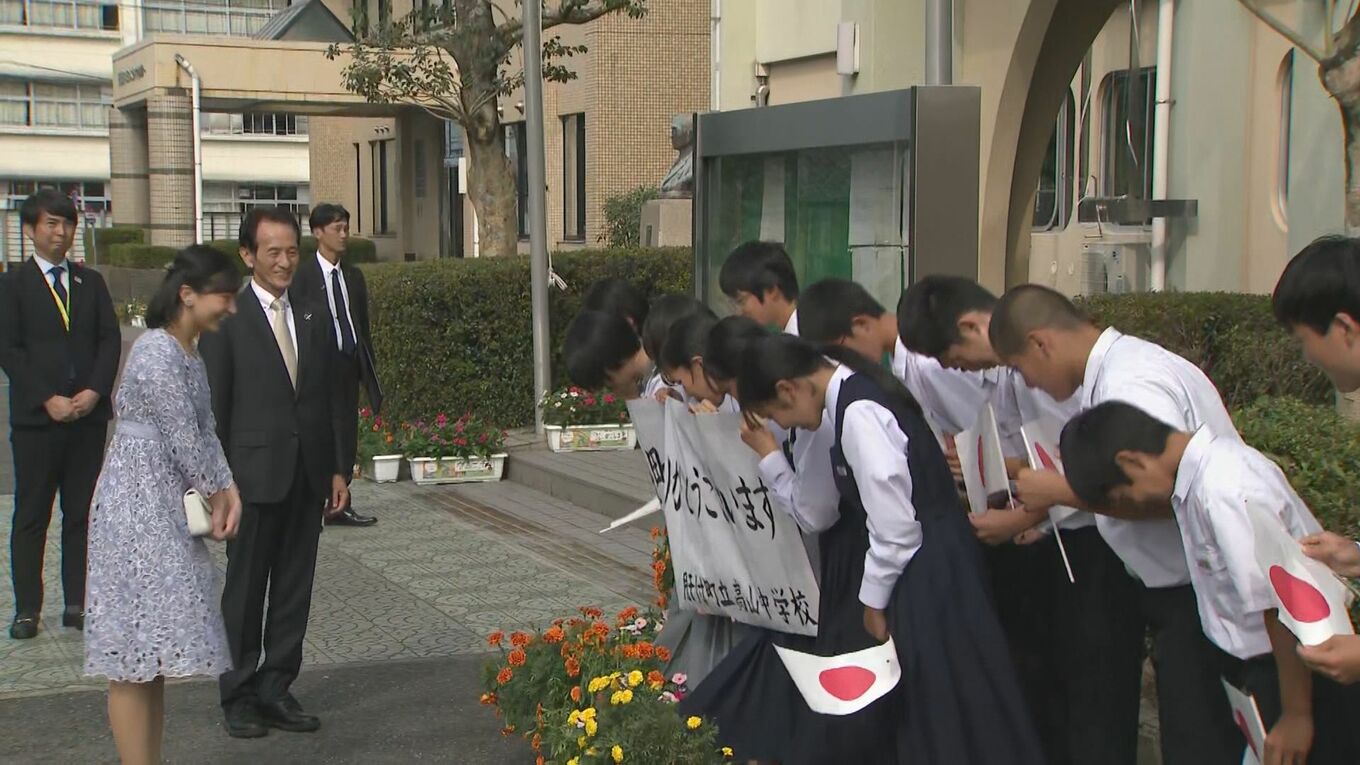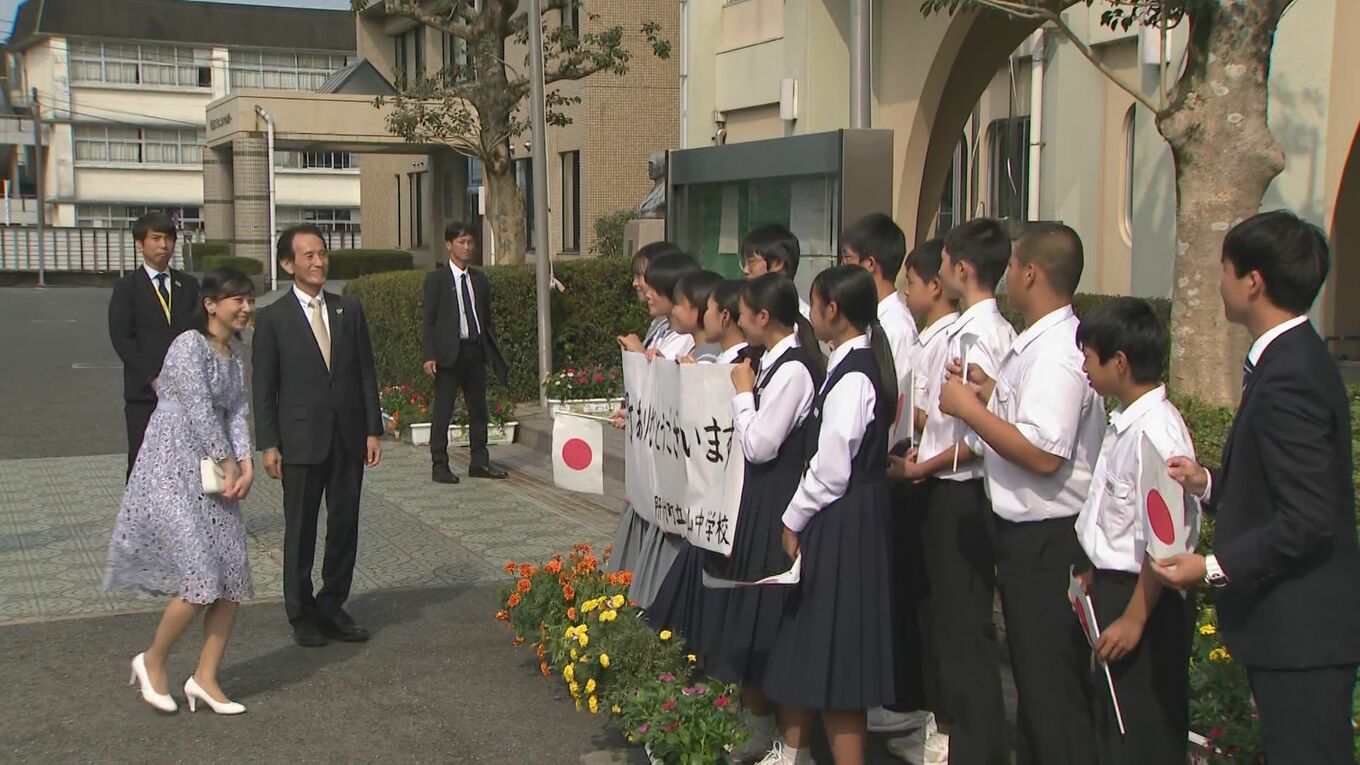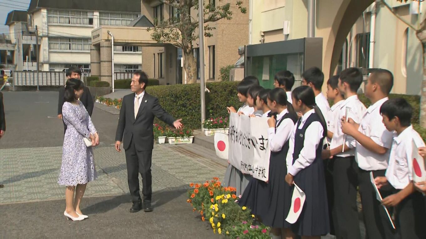 佳子さま レース地のワンピースで中学生に笑顔 初の鹿児島ご訪問