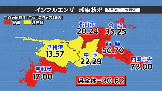 インフルエンザは依然として警報レベル超え…愛媛県内のインフル・コロナ感染状況
