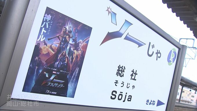 「総社駅」が「ソーじゃ駅」に?!人気映画『アベンジャーズ』の主人公と岡山弁が “…