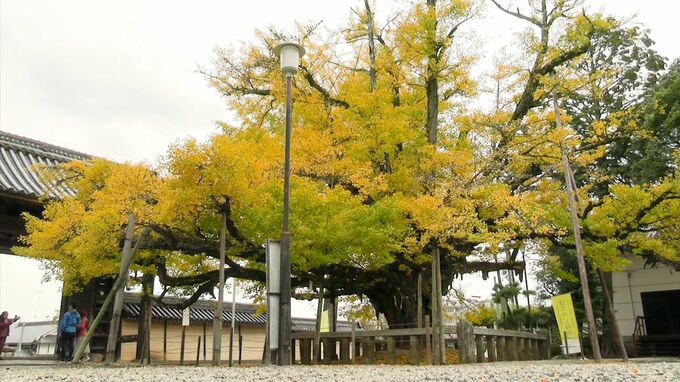 樹齢は約880年 高さは約10メートル 久米南町の誕生寺「逆木のイチョウ」が見ごろに…