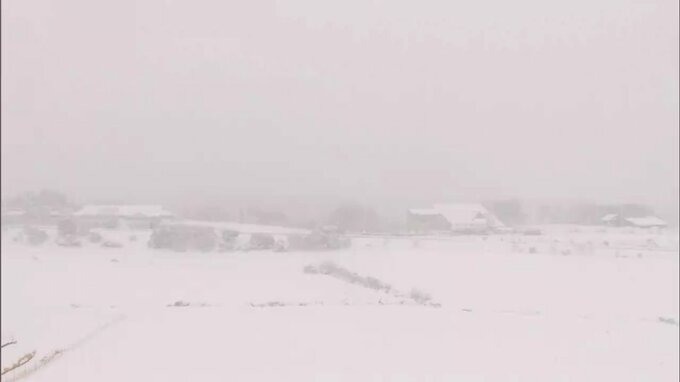 強い寒気が流れ込み 雨風強い一日に 岡山県北の真庭市蒜山では一面雪景色(午前11…
