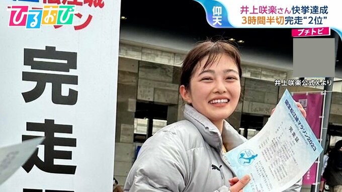 井上咲楽 3時間半切りの快挙!フルマラソン翌日に『ひるおび』生出演 「次は山を走…