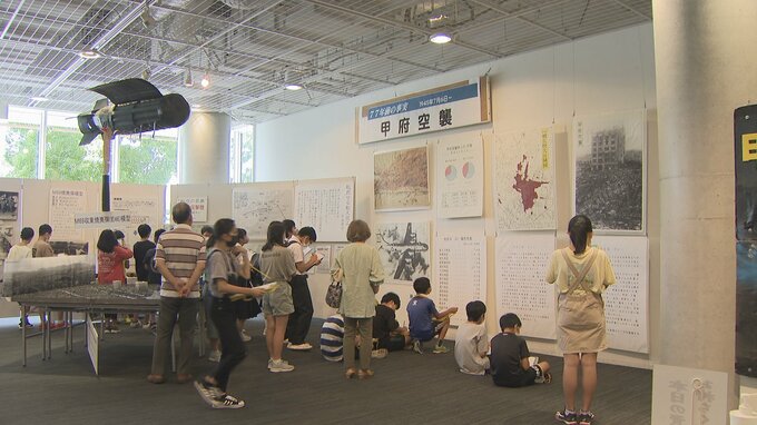 1127人が犠牲の甲府空襲から77年 当時の状況を伝える写真や模型展示 展示会が開かれている山梨県立図書館 甲府市 空襲で焼き尽くされた当時の甲府市を表したジオラマ 山梨県立図書館 甲府空襲の様子を見学する児童 甲府空襲展を見学した敷島小6年 稲垣光弥さん 記事に戻る