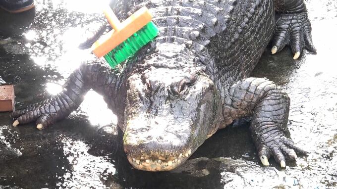 日本一危険な?大掃除 “年末恒例” ワニの背中をゴシゴシと 熱川バナナワニ園 コ…