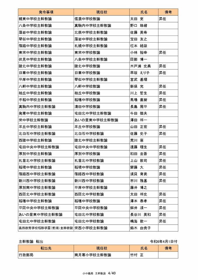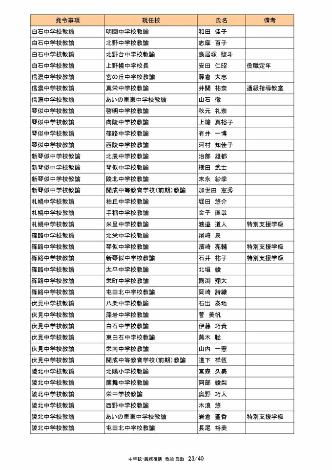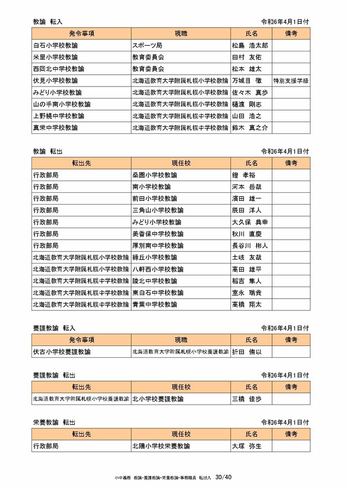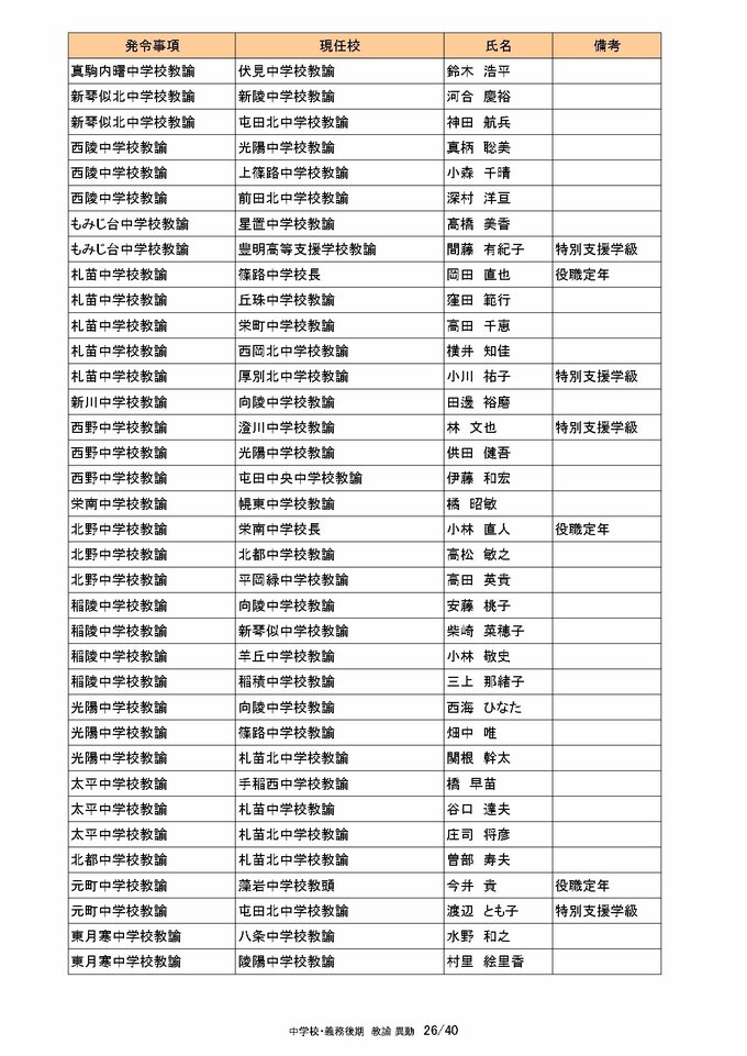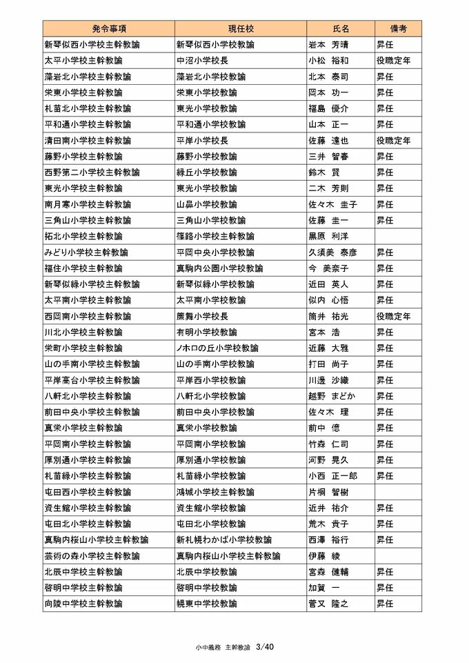 なお、そのほかの札幌市立を含む公立小・中学校、義務教育学校などの人事異動について、23日と24日に発表されています。