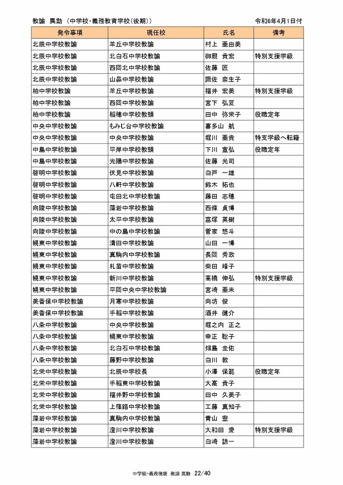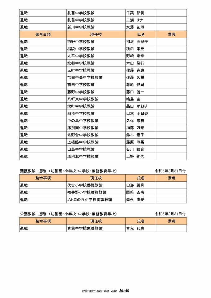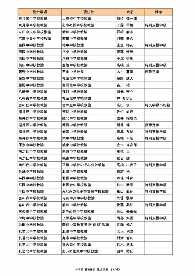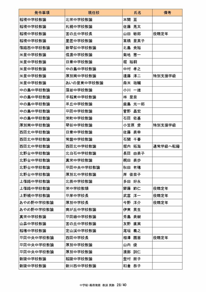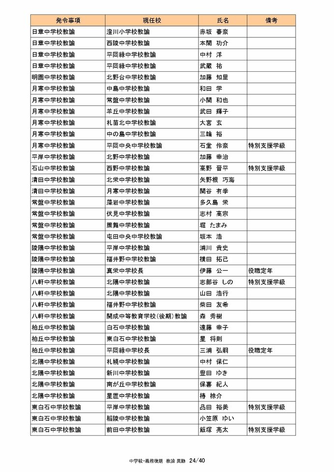 なお、そのほかの札幌市立を含む公立小・中学校、義務教育学校などの人事異動について、23日と24日に発表されています。