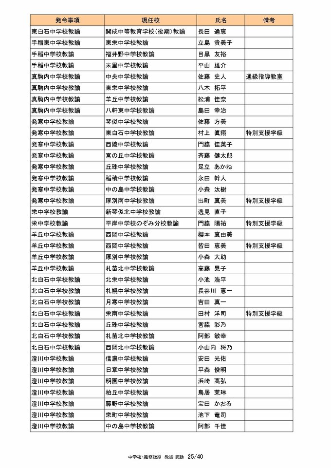 北海道教育委員会は25日、4月1日付の道内公立学校の教職員の人事異動を発表しました。(退職は3月31日付)
