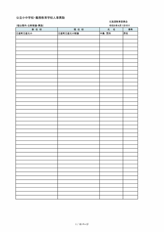 北海道教職員 人事異動2024「あの先生はどこへ?」~小学・中学など異動教職員 全名簿(25日発表分) 2024年3月25日(月) 00:00 国内 【檜山管内 公立小・中・義務教育学校(教員・事務職員・栄養教諭ほか)】 【上川管内 公立小・中・義務教育学校(教員・事務職員・栄養教諭ほか)】 【留萌管内 公立小・中・義務教育学校(教員・事務職員・栄養教諭ほか)】