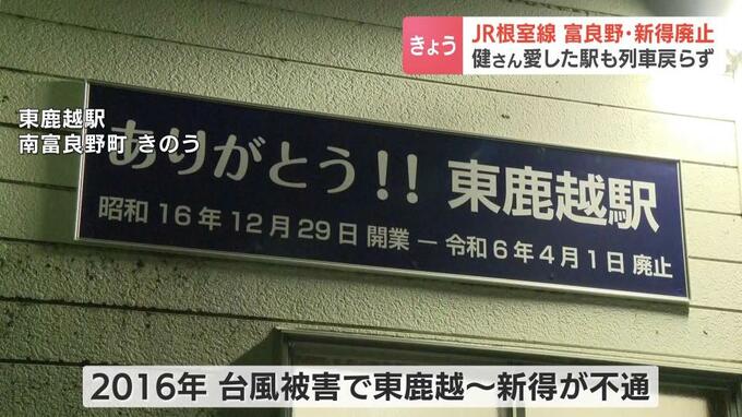 「台風10号により東鹿越から新得間の路線が不通になり、すぐにも復旧する日を願っていましたが、その願いも叶わず富良野~新得間は廃線という本日を迎えました」
