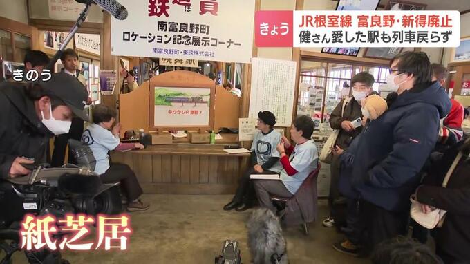 3月31日、幾寅駅周辺の人たちは手作りの紙芝居で根室線の思い出を綴りました。