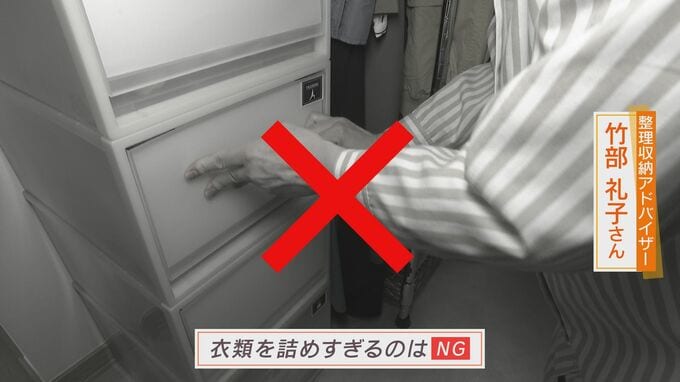 「次に使うときのことを考えて、収納することが大事。ギュウギュウに詰め込むことはやめましょう。衣類を引き出すときに、どこかで引っ掛かって傷ついたり、湿気がたまって害虫が発生する可能性があったり…」