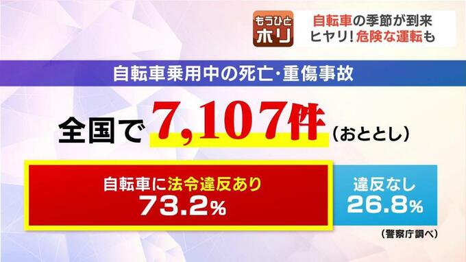 警察庁によりますと、2022年に全国で起きた自転車の死亡・重傷事故は年間7107件。このうち7割以上が、自転車側にも法令違反がありました。