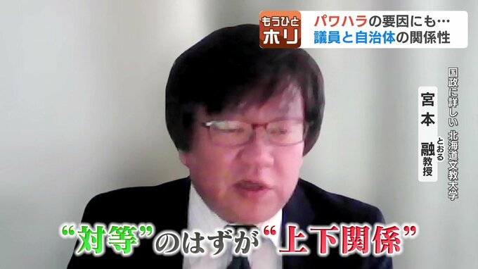 北海道文教大学の宮本融教授は、本来、対等であるべき国会議員と自治体職員の間に、”上下関係ができている”と指摘します。