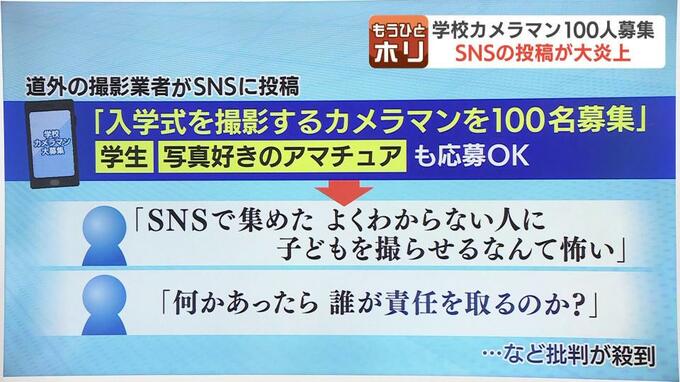 2月に、道外の写真業者が、「入学式を撮影するカメラマンを100名募集」とSNSに投稿しました。
