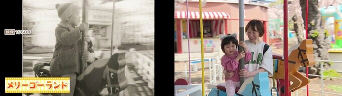 1960(昭和35)年の画像と比較しても、木馬のデザインは、昔も今もほとんど変わっていません。