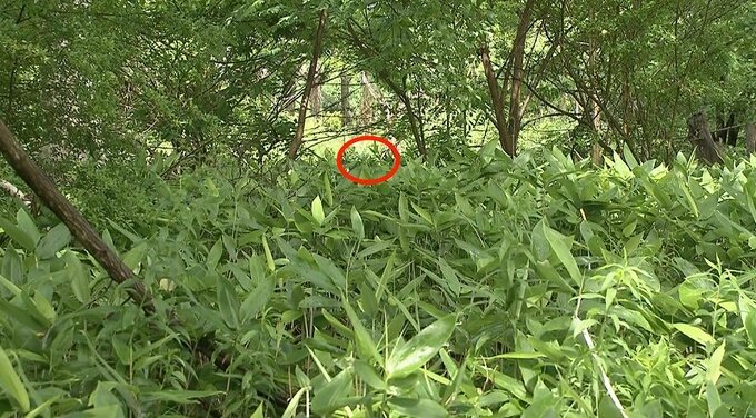 視界一面が笹やぶ…ここはどこでしょう。森の中でしょうか。