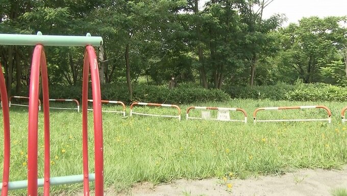 この公園では、2012年、小学生が、この笹やぶにいるクマを目撃しているのです。