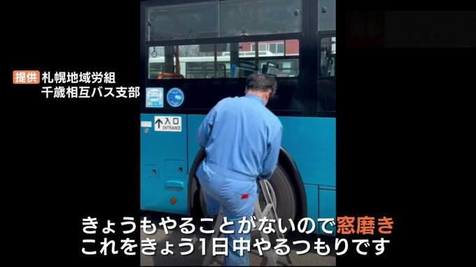 「今日もやることがないのでバスの窓磨き。これを今日1日中やるつもりです」
