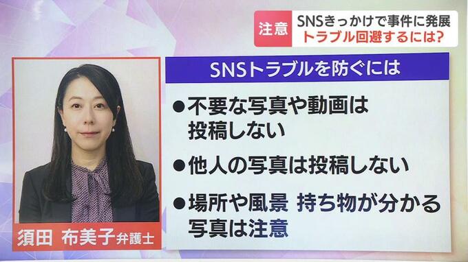 SNSがきっかけで事件に発展するケースが後を絶たない要因について、インターネット上のトラブルに詳しい須田布美子弁護士は、「SNSは匿名性も高く、画像や動画を簡単に投稿できるので、子どもたちや若年層は気軽にアップしてしまう傾向があるが、一度投稿し、広がると削除することが難しくなり、トラブルに発展することが多い」と指摘しています。