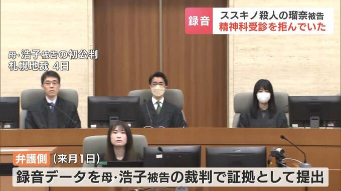 札幌ススキノのホテルで男性が殺害された事件で、田村瑠奈被告が、父親の修被告から勧められた精神科の受診を拒んでいたことが、会話の録音データからわかりました。