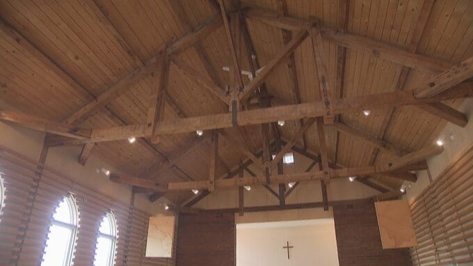 2022年初夏。畠中さんは、札幌の隣り、恵庭市にある教会「日本基督教団 島松伝道所」に向かいました。赤い三角屋根に白い十字架が立つ、築年数およそ70年の古い教会です。この日は外壁工事の打ち合わせがありました。