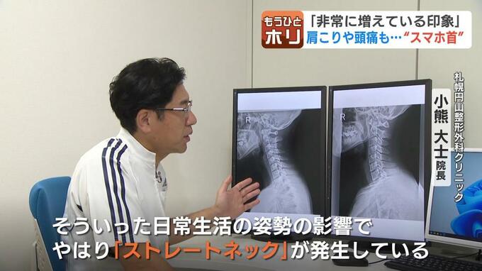 「今この現代社会の中において、スマートフォンを見る機会が非常に増えている。それによって、下を向いてスマートフォンを見るケースが多くなる。そういった日常生活の姿勢の影響で、やはり『ストレートネック』が発生している」