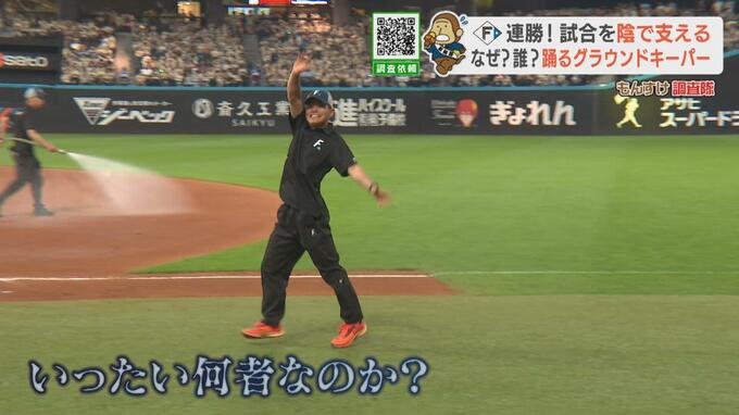 しかしその日は、1塁側でグラウンド整備をしていたスタッフが突然、ファイターズガールたちと一緒に激しく踊り始めました。