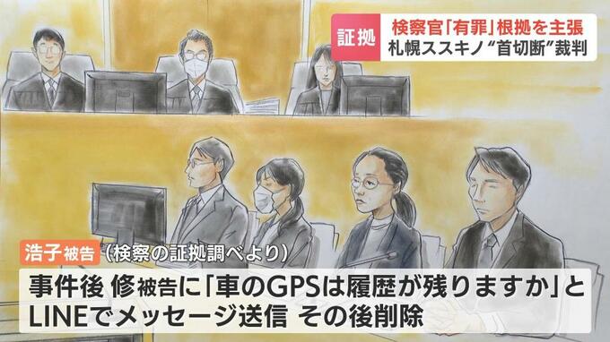 予定を変更し、検察側が証拠を読み上げ、浩子被告の有罪の根拠として、事件後、修被告に「車のGPSは履歴が残りますか」とLINEでメッセージを送った後、削除していたと指摘。