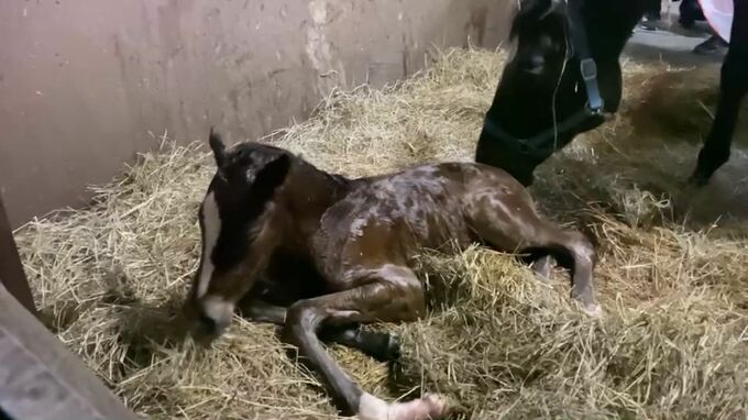 馬を必死になだめているのは静内農業高校の3年生です。彼らは去年4月、この馬が生まれる瞬間を校内の厩舎の中で見守りました。その直後から生徒と仔馬の濃密な時間はスタートしました。
