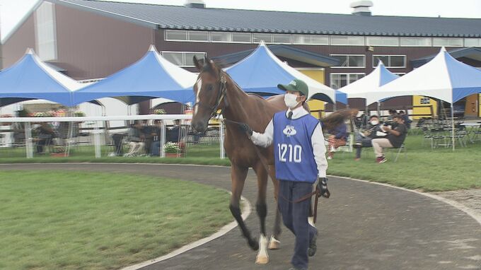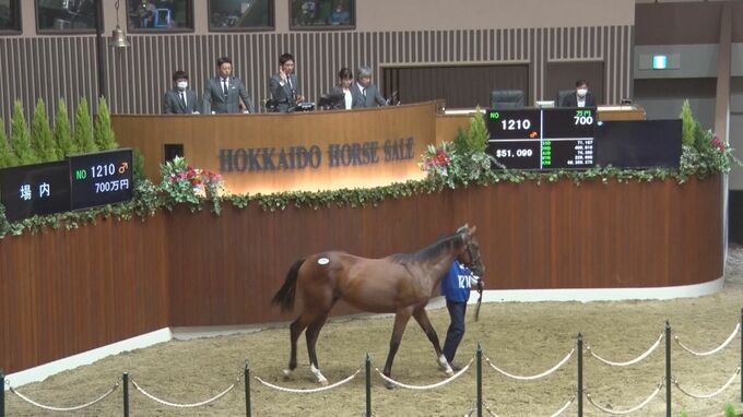 落札額は700万円。静内農業高校で歴代2番目となる高額での落札です。手綱を引いていた阿部さんは奏叶の首に手を添えてたたえます。競り落としたのは重賞を制した馬も輩出している地元の名門牧場「ミルファーム」です。