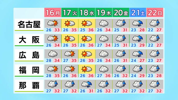 南西諸島や九州南部では、15日は台風本体や台風周辺の暖かく湿った空気が流れ込み、大気の状態が非常に不安定となるため、雷を伴った激しい雨が降り、大雨となる所があるでしょう。