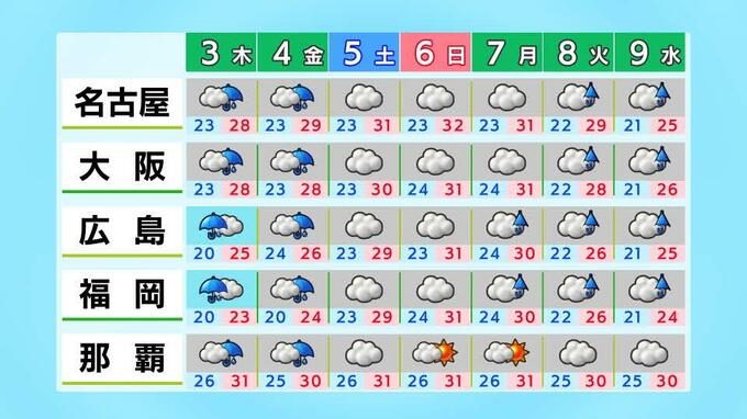 沖縄地方では、うねりを伴った高波や強風、土砂災害、低い土地の浸水や河川の増水に注意・警戒してください。