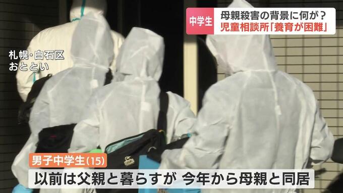 関係者によりますと男子中学生は以前、父親と暮らしていましたが今年に入って母親と同居するようになり、事件当時は男子中学生と母親、妹の3人で暮らしていました。