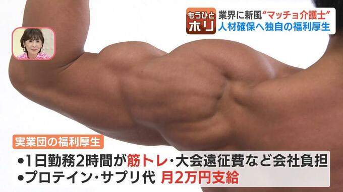2018年には、フィットネスとボディービルの実業団を創設。すると、介護の経験がなくても筋トレに関心のある若者を中心に、人材が集まるようになり、いまでは月平均で90件ほどの応募が来るようになりました。鈴木さんもメンバー入りを目指す実業団。現在、20代の5人が活躍しています。