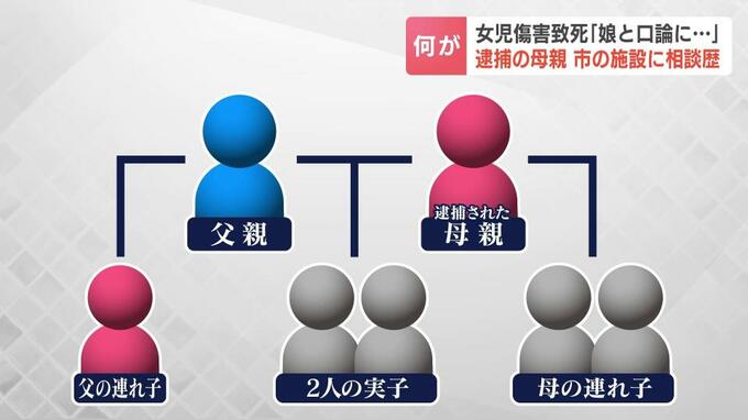 関係者によりますとこの家族は、逮捕された母親と再婚した夫の間の2人の子と母親の2人の連れ子、そして夫の連れ子であり今回の事件で死亡した女の子のきょうだい5人、あわせて7人の家族でした。